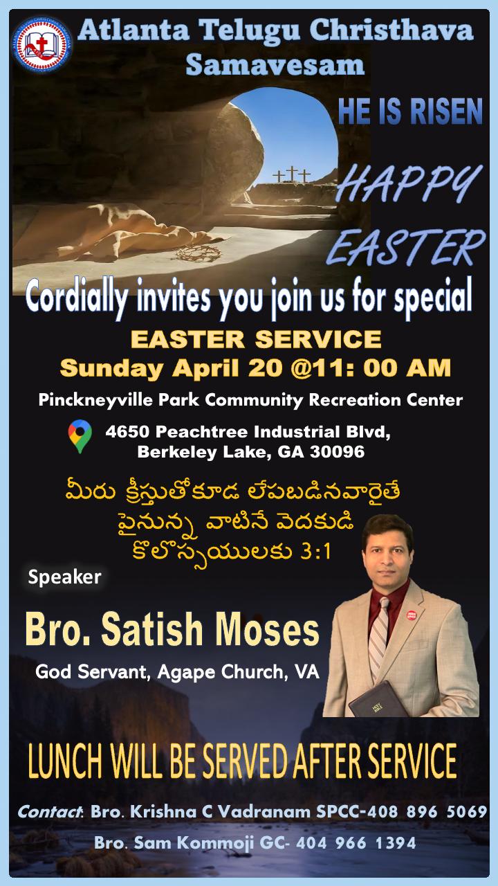 Easter Service April 20, 2025 11:00 am Pinckneyville Park Community Recreation Center 4650 Peachtree Industrial Blvd, Berkeley Lake, GA 30096